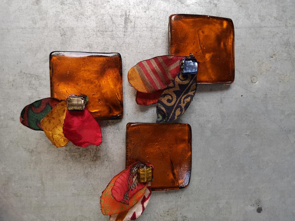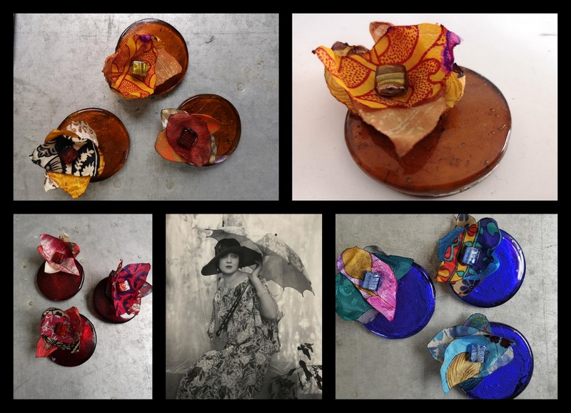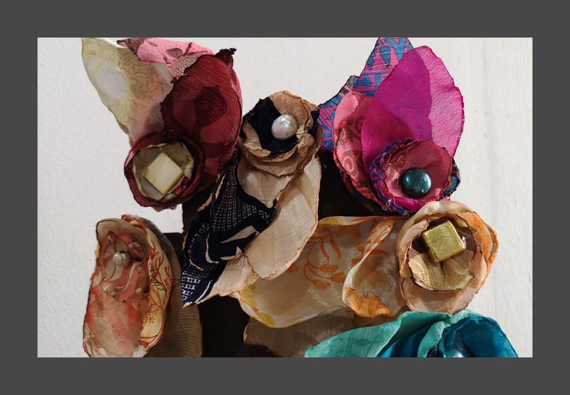 FL05 Ragtime silk flecos brooch aprox 8cm