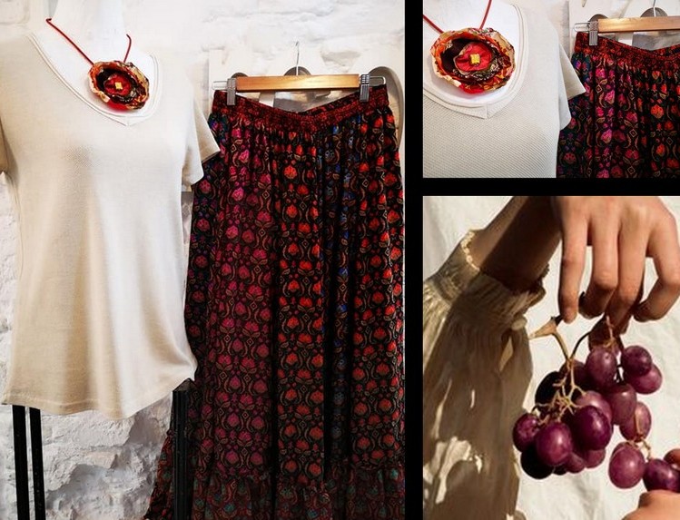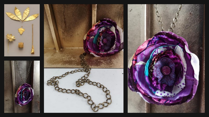 FL15 Ragtime silk flecos necklace aprox 40cm